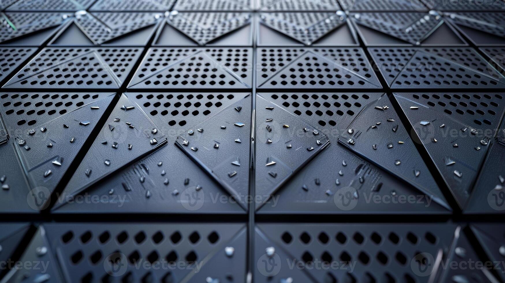 A detailed shot capturing the intricate design of a patterned industrial floor composed of small interlocking triangles creating a dynamic visual effect of overlapping triangles Pro Photo