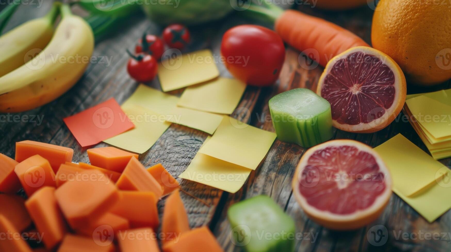 A table filled with Postit notes each one representing a different brainboosting food to include in an elderly persons diet Pro Photo