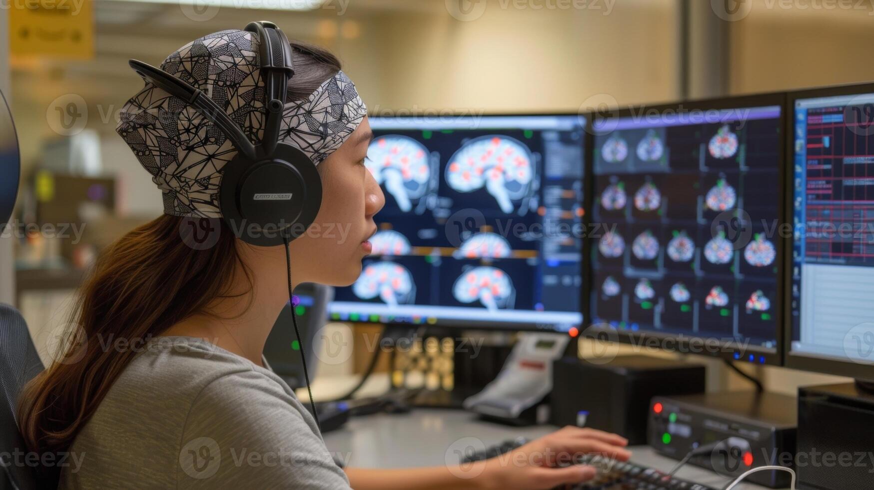 A researcher using advanced computer software to map out brain activity patterns in a clinical study on depression Pro Photo