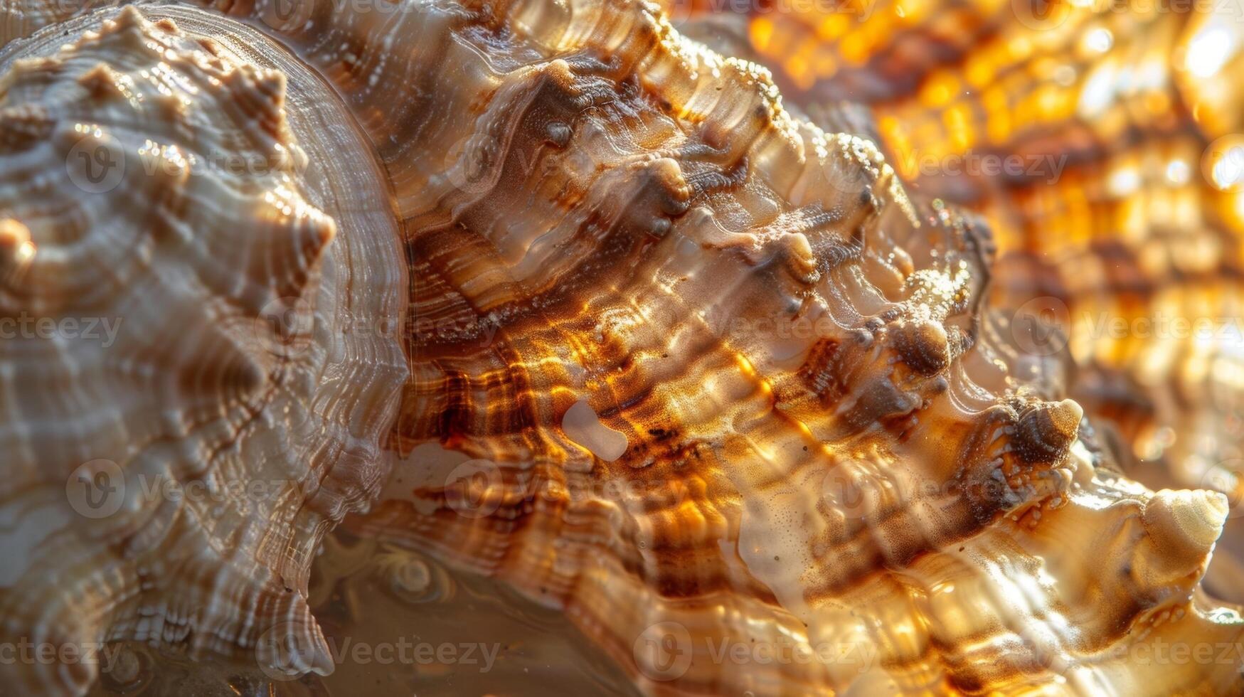 The outer layer of the seashell is rough and bumpy with small raised sections that catch and reflect light creating a mesmerizing sparkle Pro Photo
