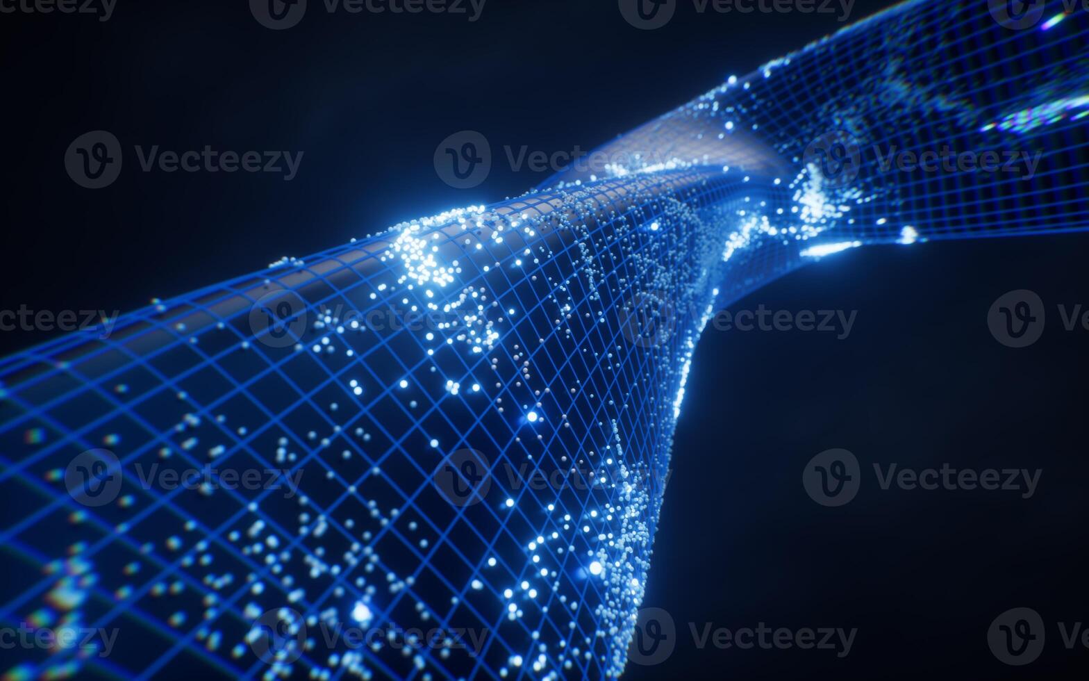 Abstract curve geometry with flowing particles, 3d rendering. Pro Photo
