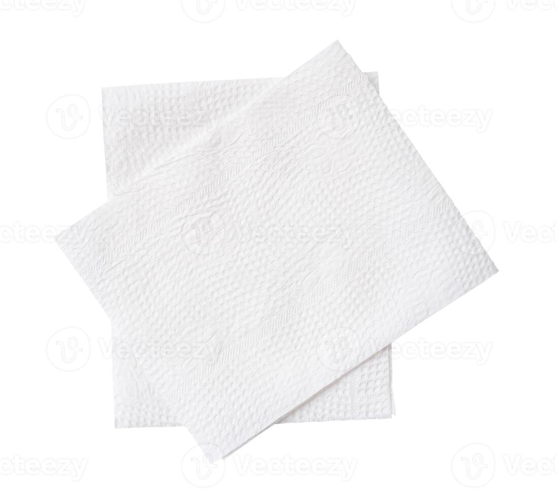 Top view of folded tissue paper in stack prepared for use in toilet or restroom isolated on white background with clipping path Pro Photo