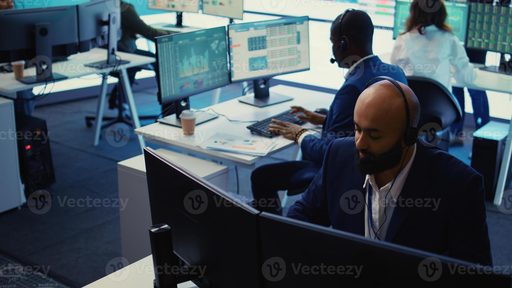 Management associate sharing insight on annual statistics during a call with the advisory board, providing initiatives to enhance operational performance metrics. Big data screen. Camera B. Pro Photo