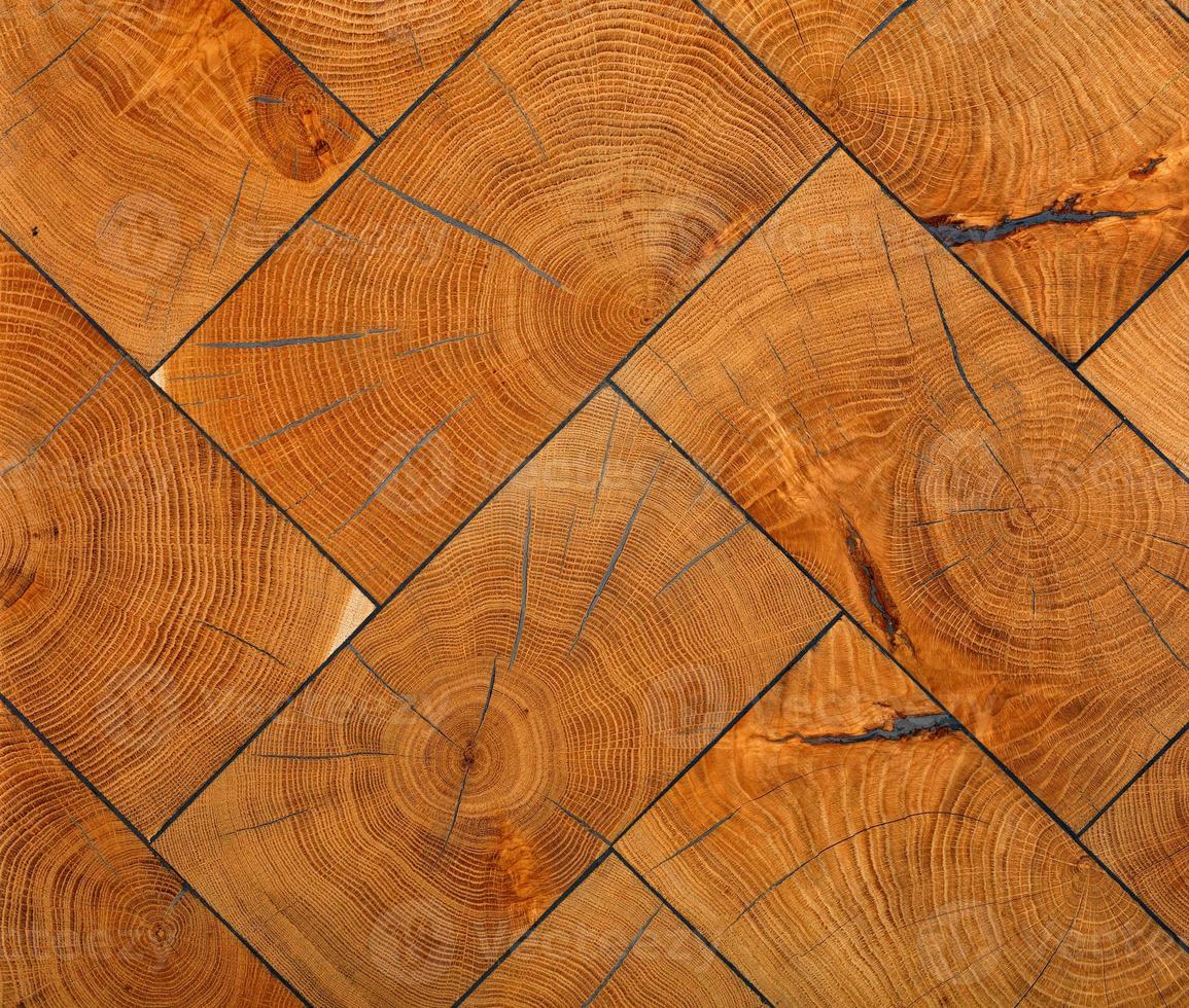 The rectangular planks of the transverse saw cuts of the trees are neatly lined with herringbone pattern. Pro Photo