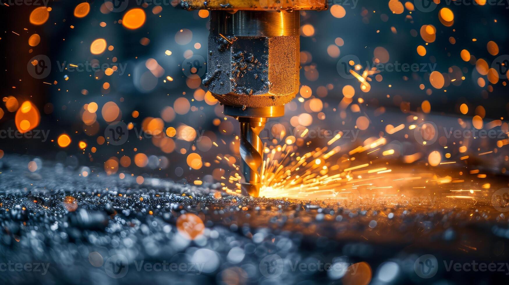 Close-up image of drilling and digging the ground with a power-saving machine. Pro Photo