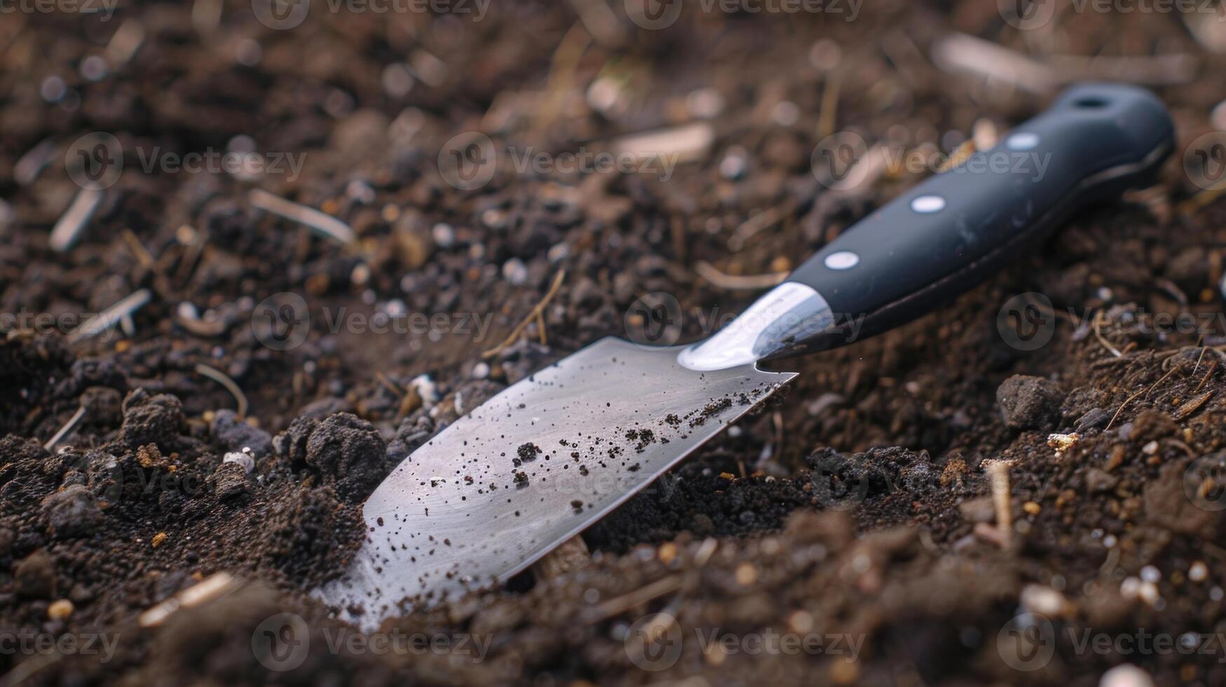 A detailed view of a trowels sharp edge showcases its ability to slice through soil with ease making it a musthave tool for any gardening enthusiast Pro Photo