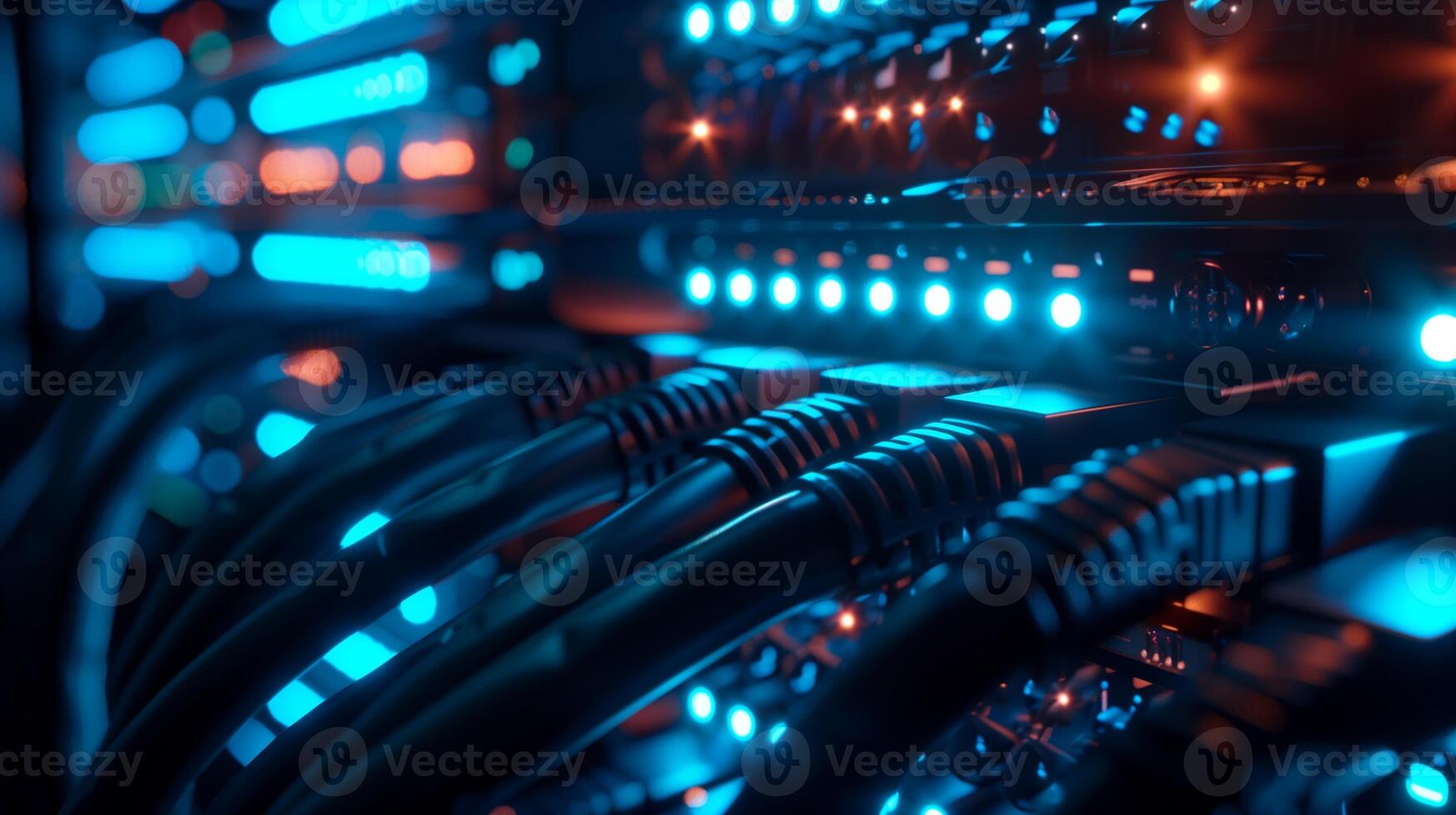 Detailed View of Ethernet Cables Connected to Illuminated Server Pro Photo
