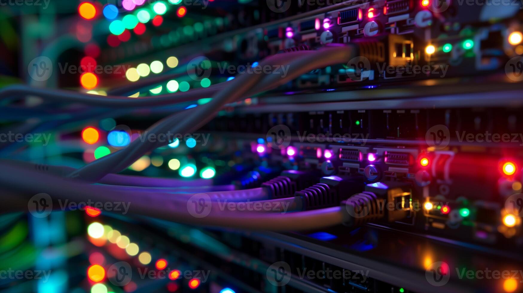 Detailed View of Ethernet Cables Connected to Illuminated Server Pro Photo