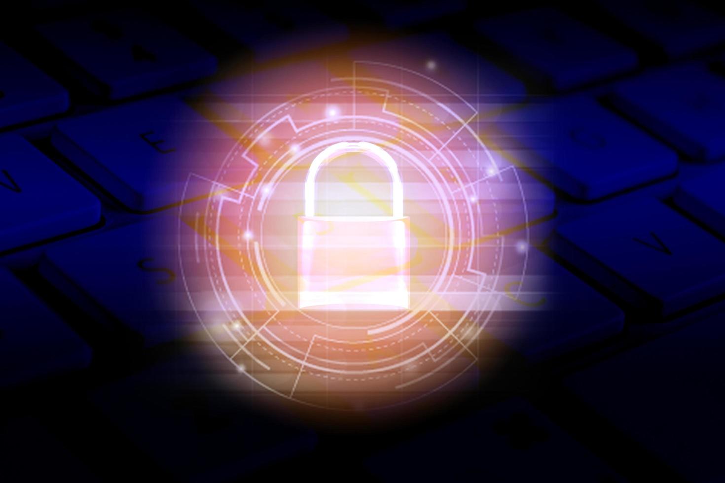 Data security systems computer with locked padlock on dark keyboard for protect crime by an anonymous hacker technology background cyber security photo
