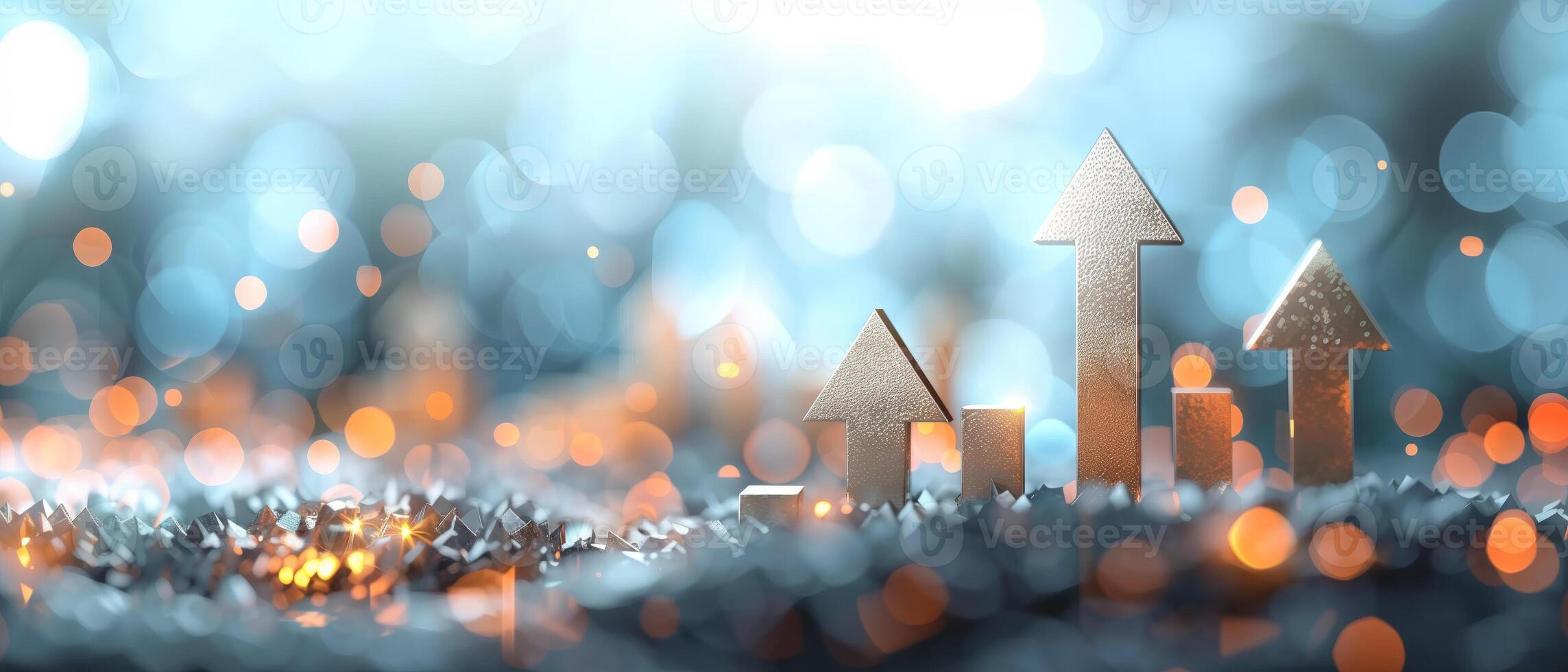 Abstract image of upward arrows symbolizing growth and progress with a shimmering, bokeh background. Ideal for business and technology themes. Pro Photo