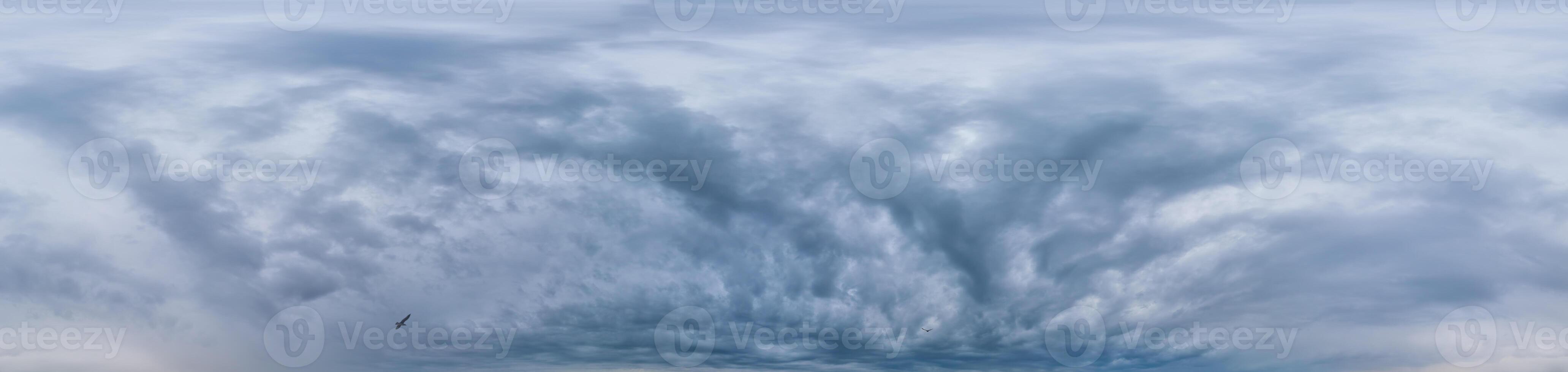 Sky panorama on overcast rainy day with low clouds in seamless spherical equirectangular format. Complete zenith for use in 3D graphics, game and for aerial drone 360 degree panorama as a sky dome Pro Photo