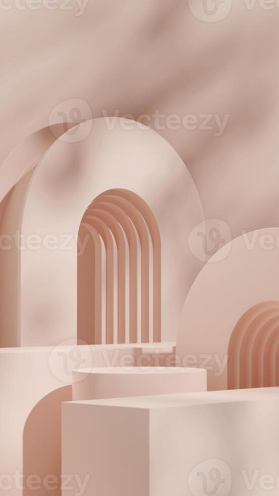 Light peach empty scene podium 3d rendering mockup template in portrait with arch background Pro Photo
