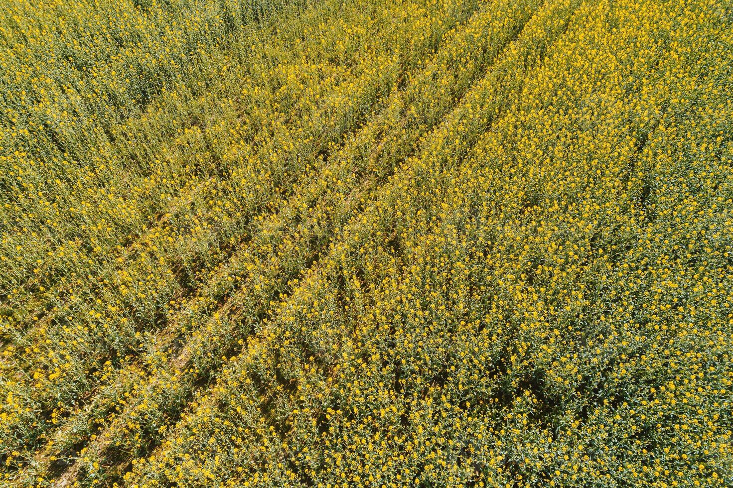 Aerial drone view of a bright yellow rapeseed field with parallel lines creating a striking pattern Pro Photo