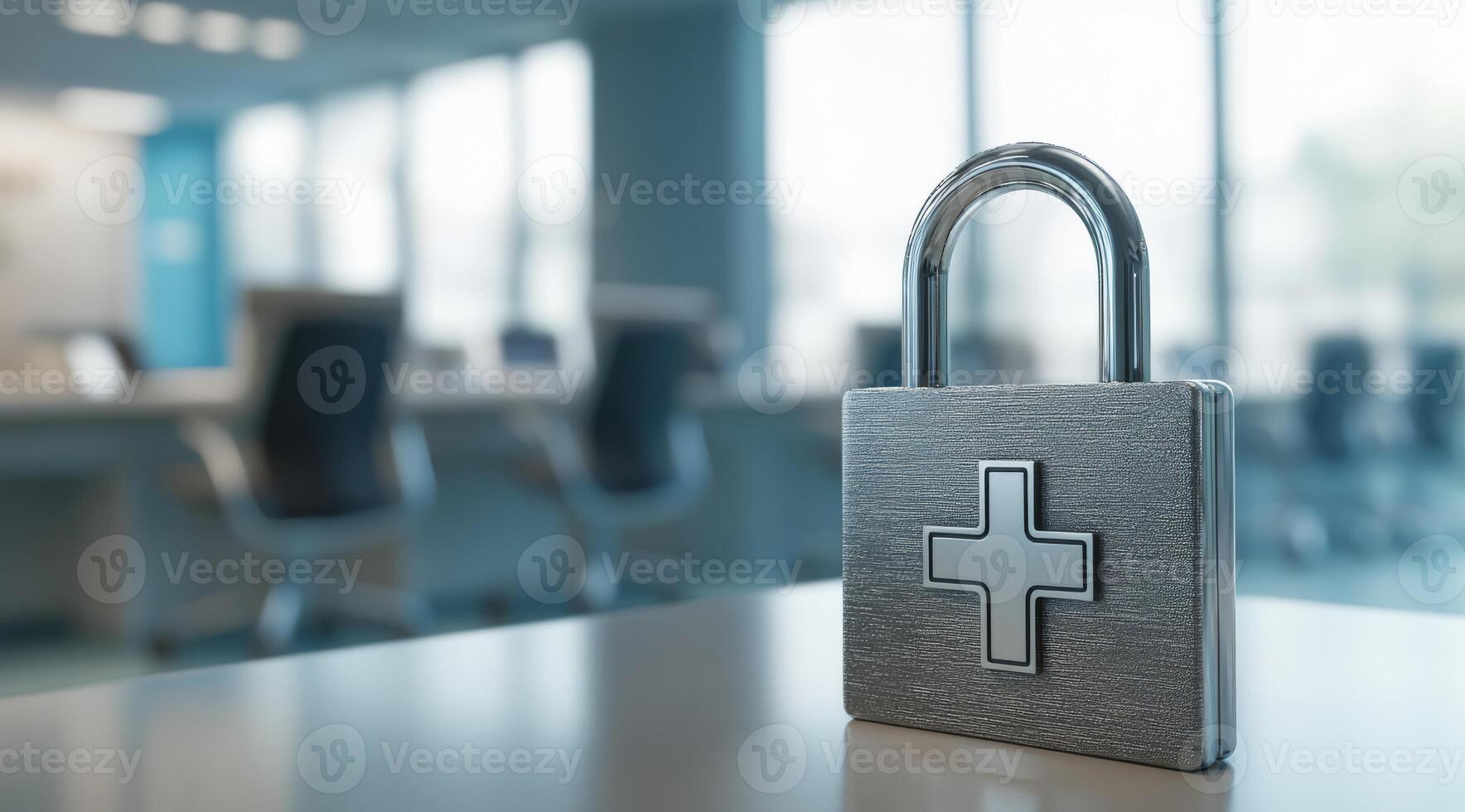 A padlock icon symbolizing the critical importance of data security within healthcare environments, emphasizing the essential need to protect sensitive patient information and maintain privacy Pro Photo
