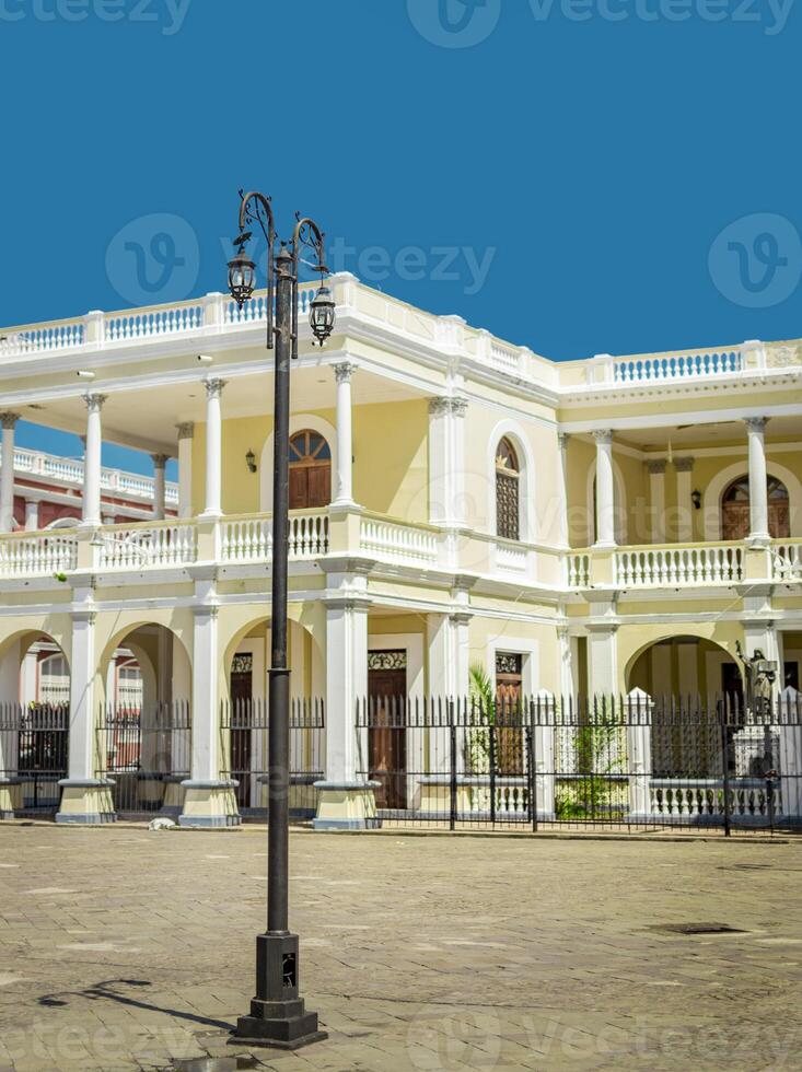 A lantern pole in a square with copy space, An illuminated lantern pole, Public lantern pole, Public lighting pole Pro Photo