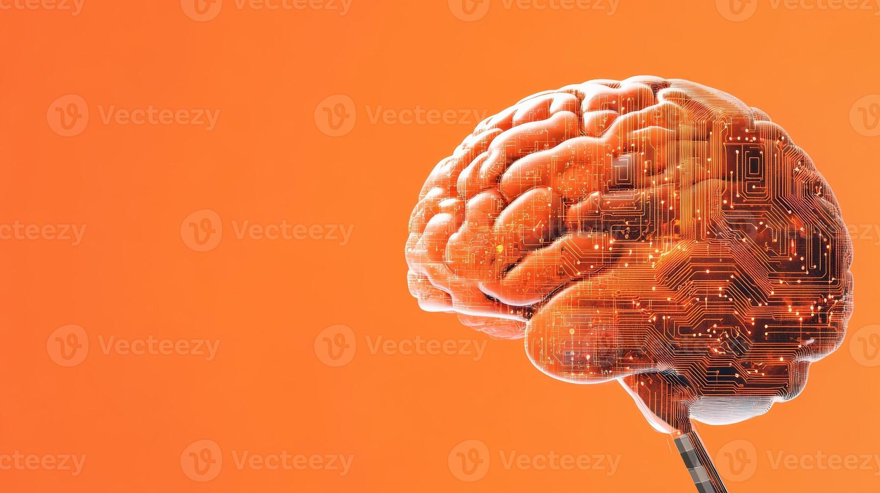 Artificial intelligence brain concept with digital circuits on orange background, symbolizing technology and machine learning integration. Pro Photo
