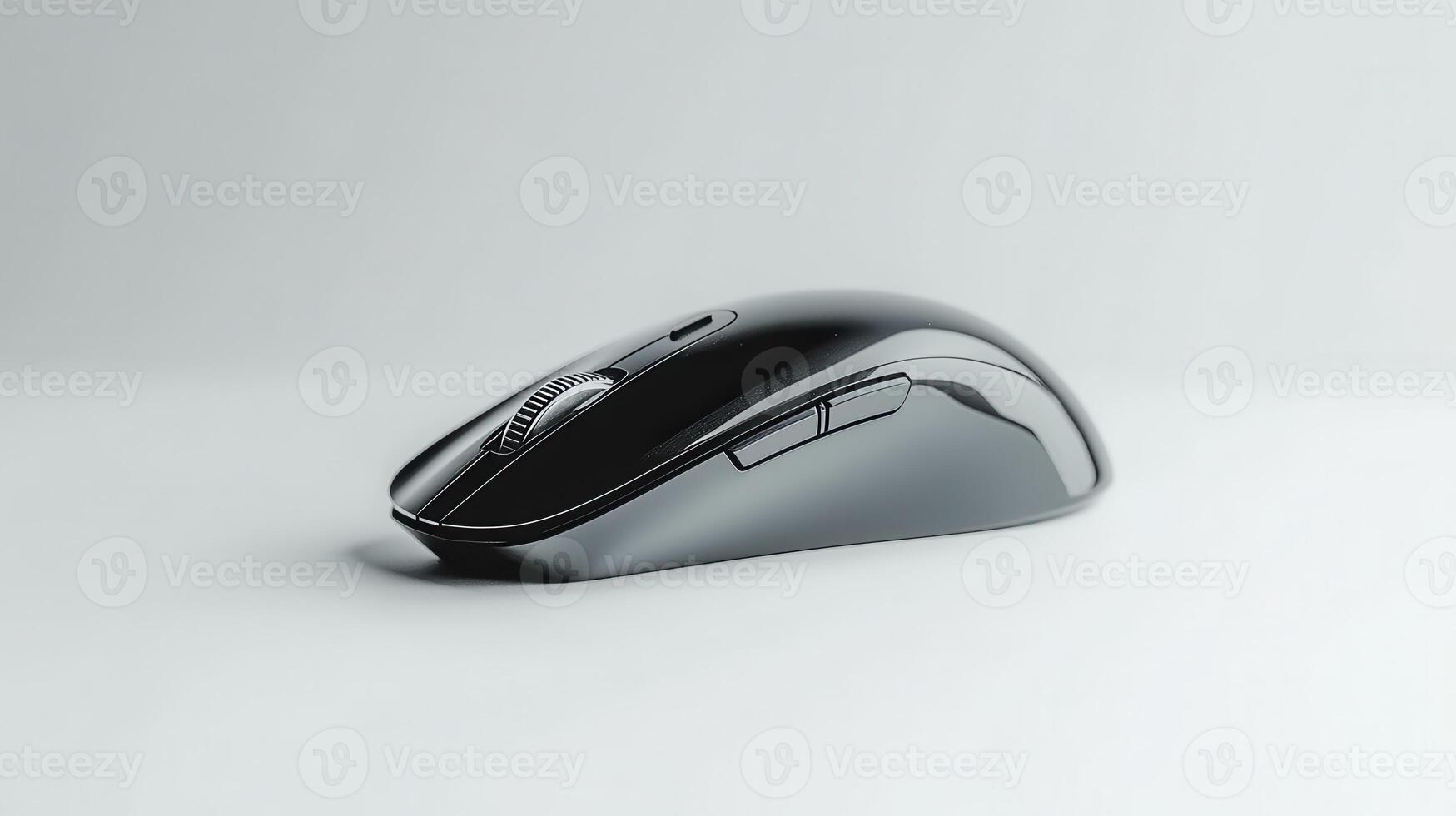 A sleek wireless computer mouse resting on a smooth surface in natural light, showcasing its modern design and ergonomic shape Pro Photo