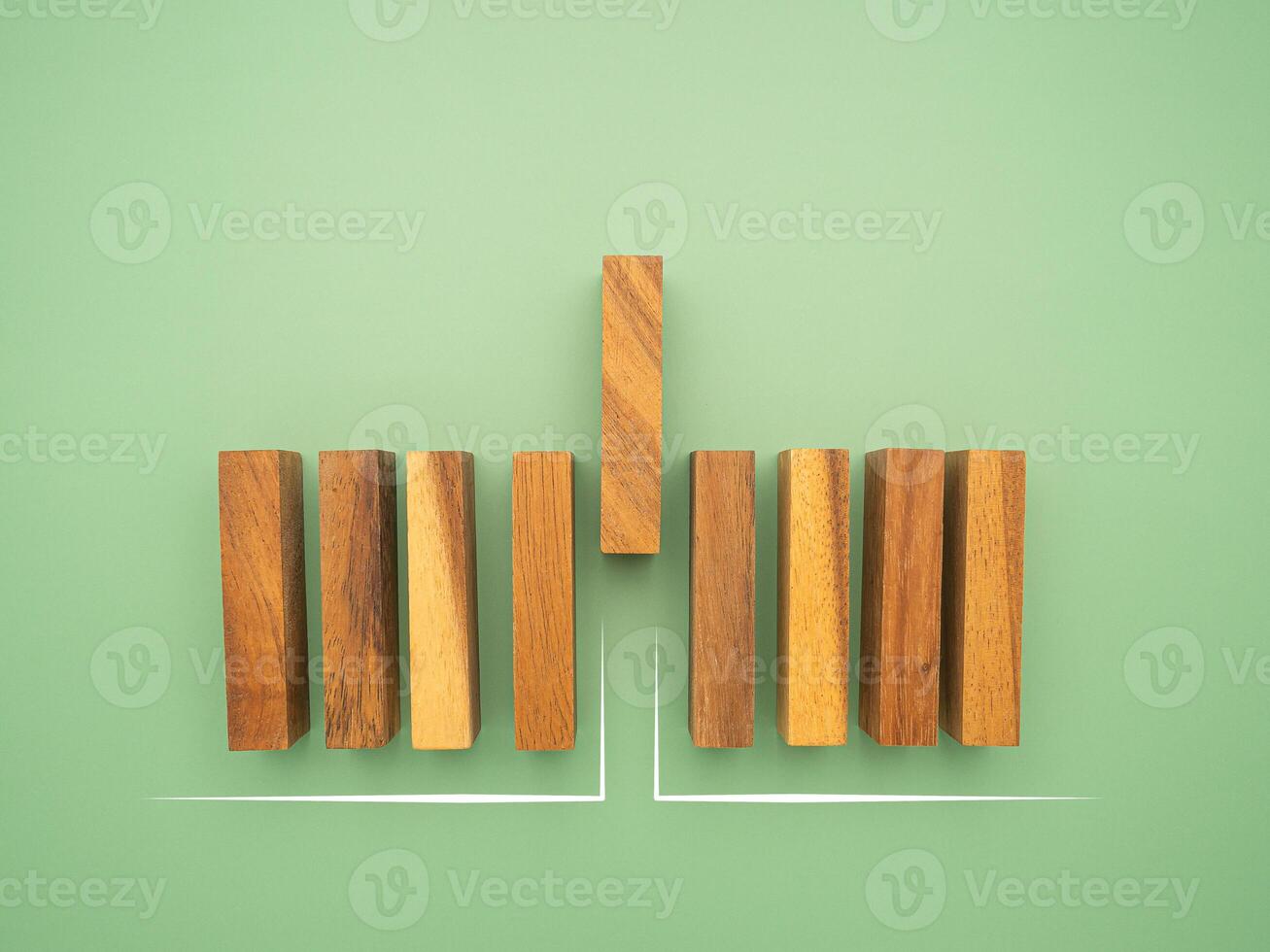 Top view of empty nine wooden blocks isolated on a green background. Concept of planning, strategy, and risk and in business. Space for text Pro Photo