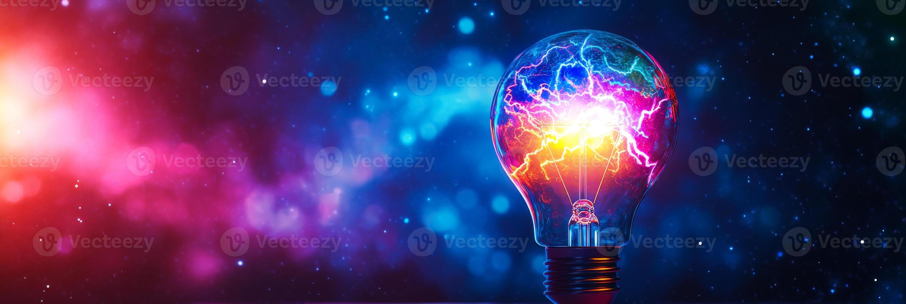 A bright and vibrant digital representation of a light bulb symbolizing both innovation and creativity within the realm of technology, encircled by an array of colorful and dynamic cosmic elements Pro Photo