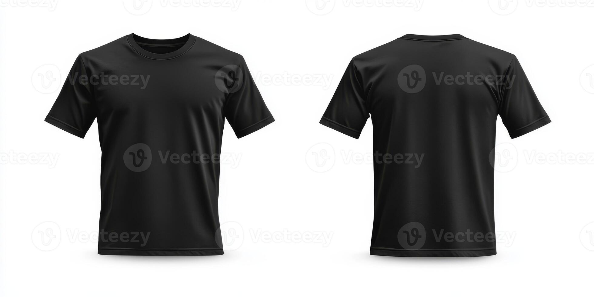 This is a stylish mockup template designed specifically for a blank black tshirt, featuring both front and back views, making it ideal for use in printing as well as design presentations Pro Photo