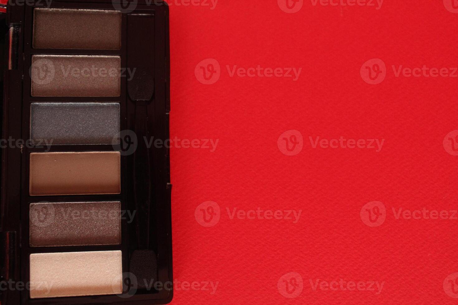 Eyeshadow close-up view from above on a red background with space for copyspace text Pro Photo