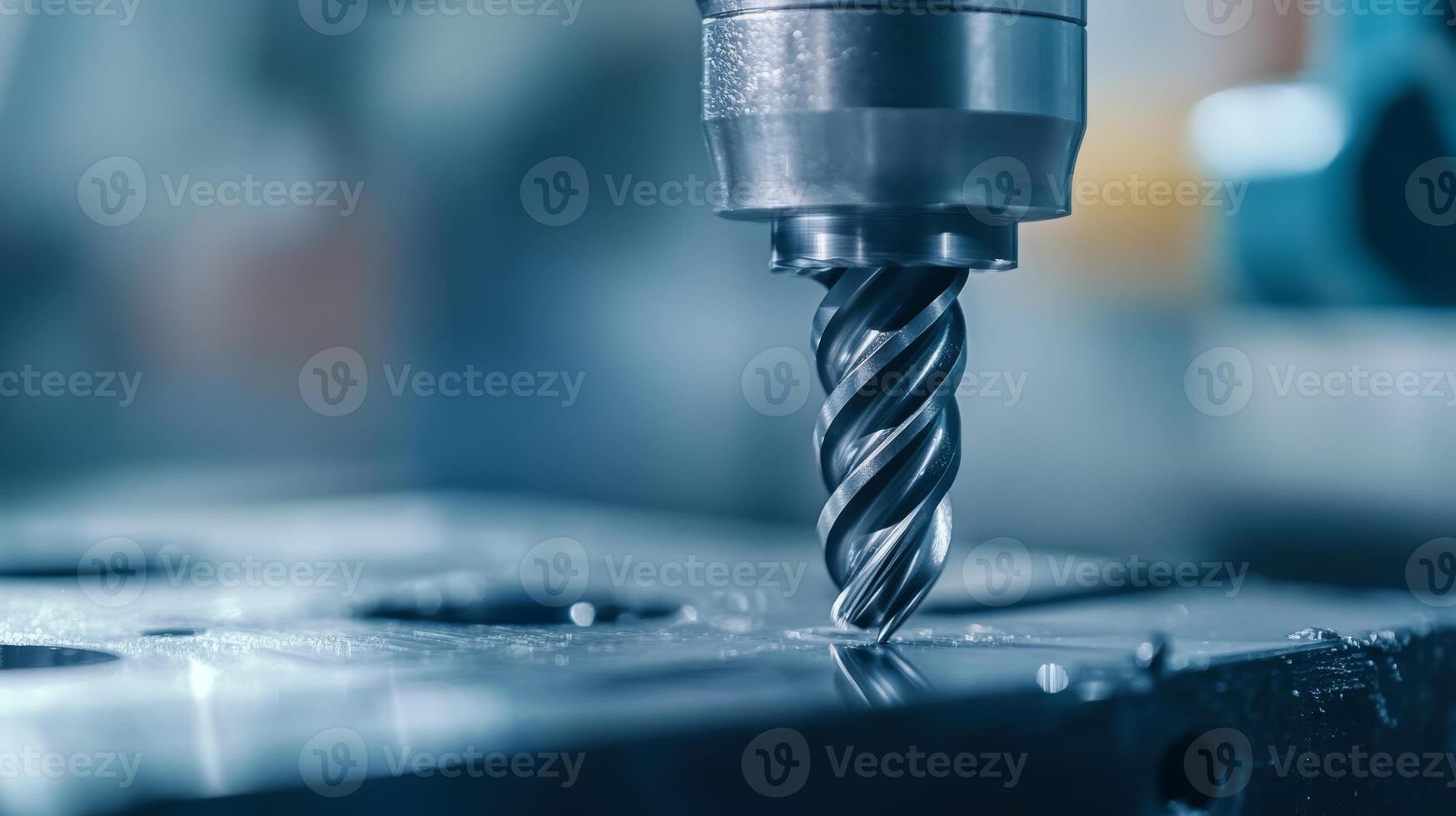 The image shows a closeup of an industrial drill bit on a machine, showcasing its precise engineering and advanced metal processing technology, reflecting its sophisticated design and efficiency Pro Photo