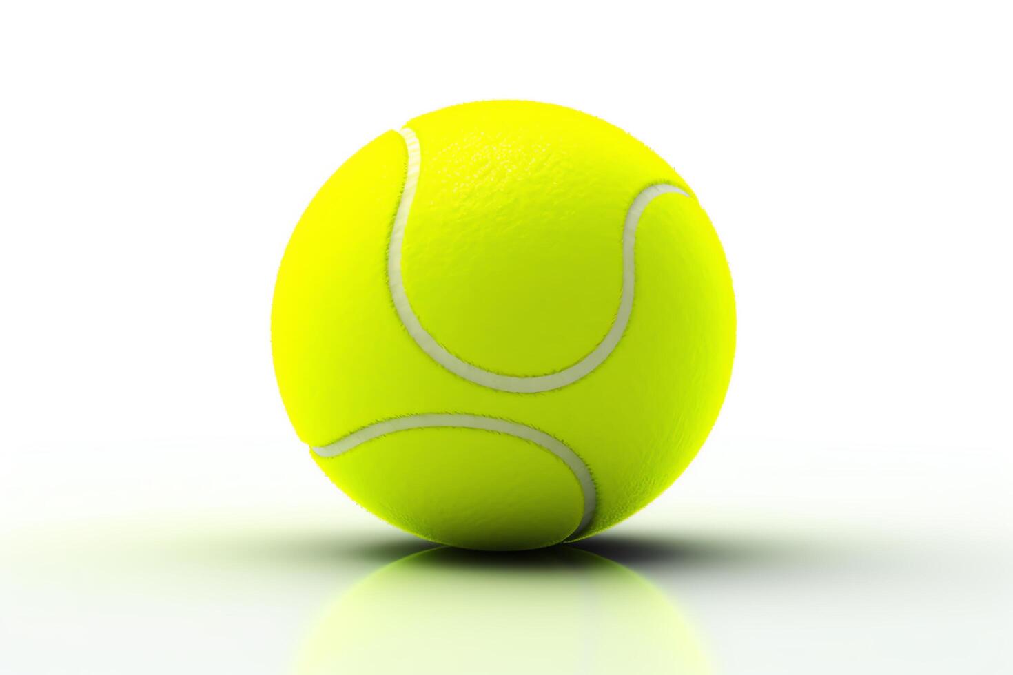 Create a high-quality 3D rendering of a tennis ball. The ball should be in focus and have a realistic texture. The background should be a simple white. photo