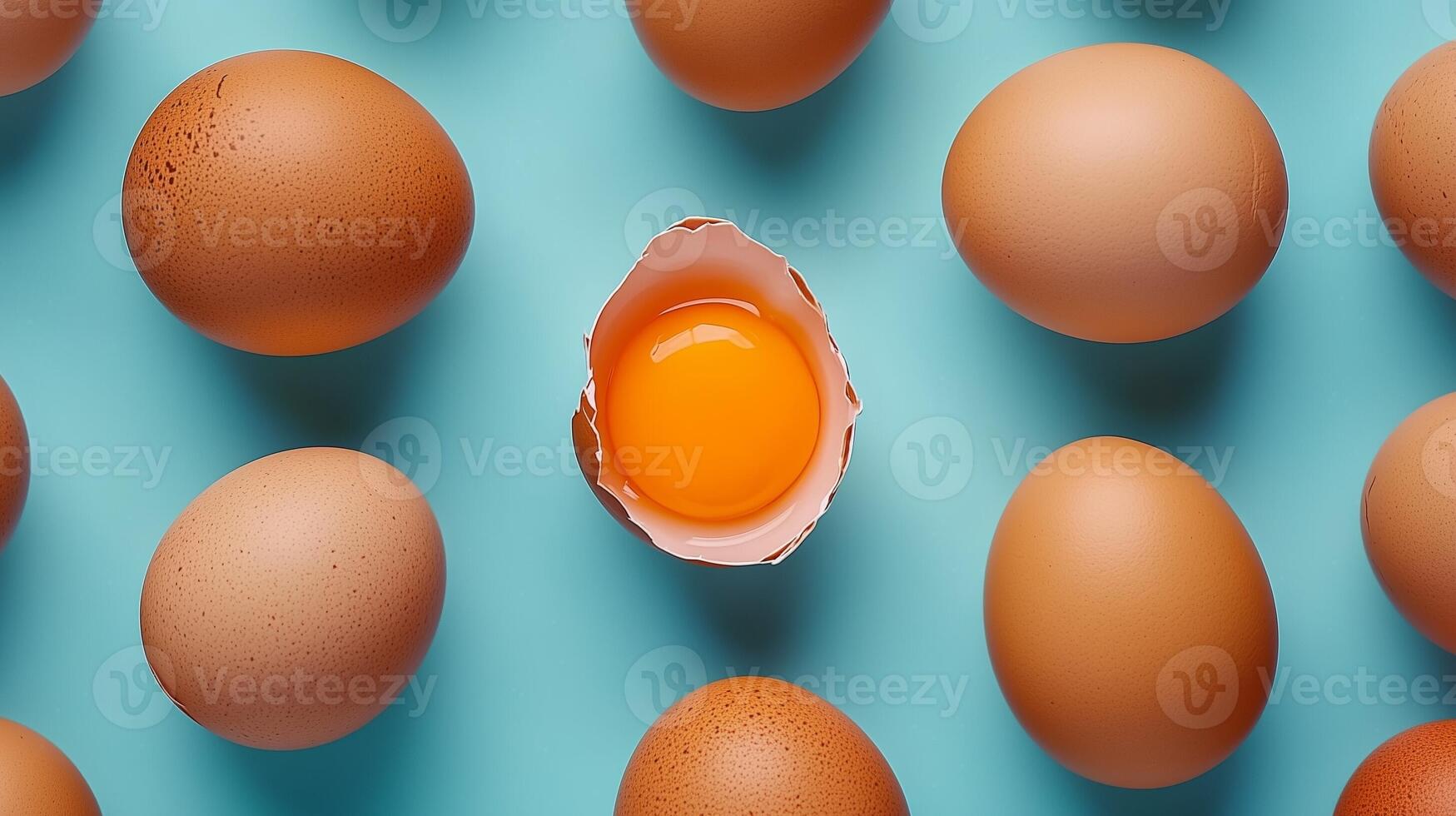 Egg pattern with a distinct anomaly of crushed shell showing egg yolk solid background Pro Photo