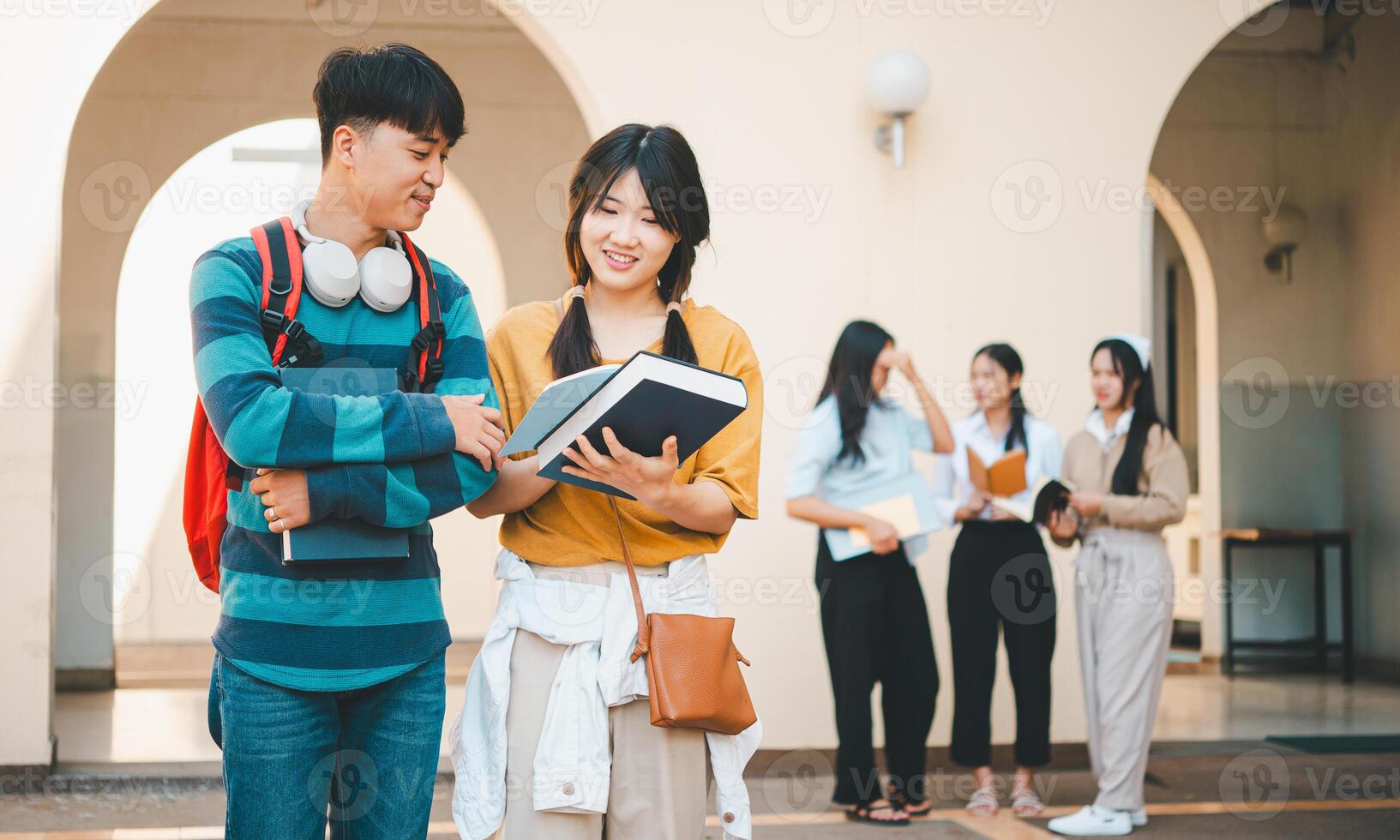 group of students young university students consulting doing homework, cooperating research plan Discuss concepts and strategies. Prepare presentations on laptops and tablet computers. Pro Photo