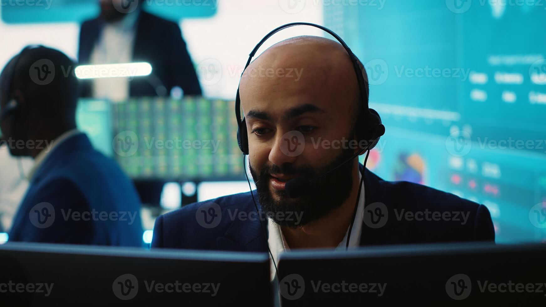 Management associate sharing insight on annual statistics during a call with the advisory board, providing initiatives to enhance operational performance metrics. Big data screen. Camera A. Pro Photo