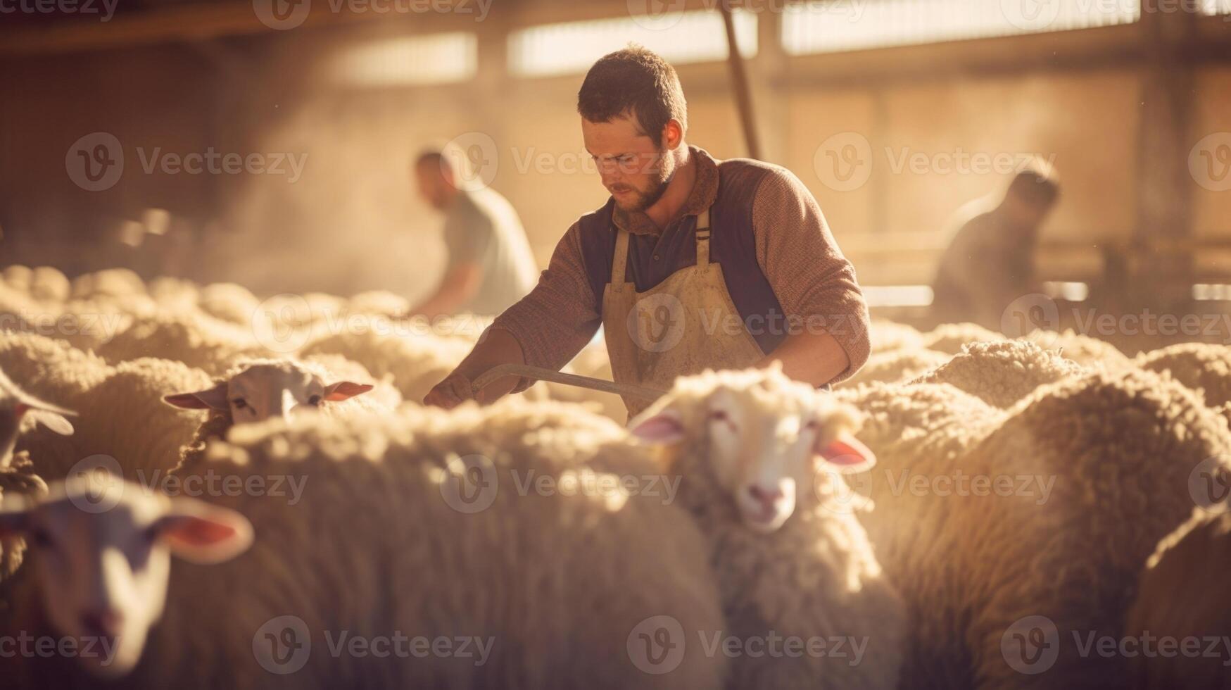 Rows upon rows of shearing sheds, buzzing with the sound of machinery and the bleating of sheep, as workers skillfully remove wool from each animal. Pro Photo