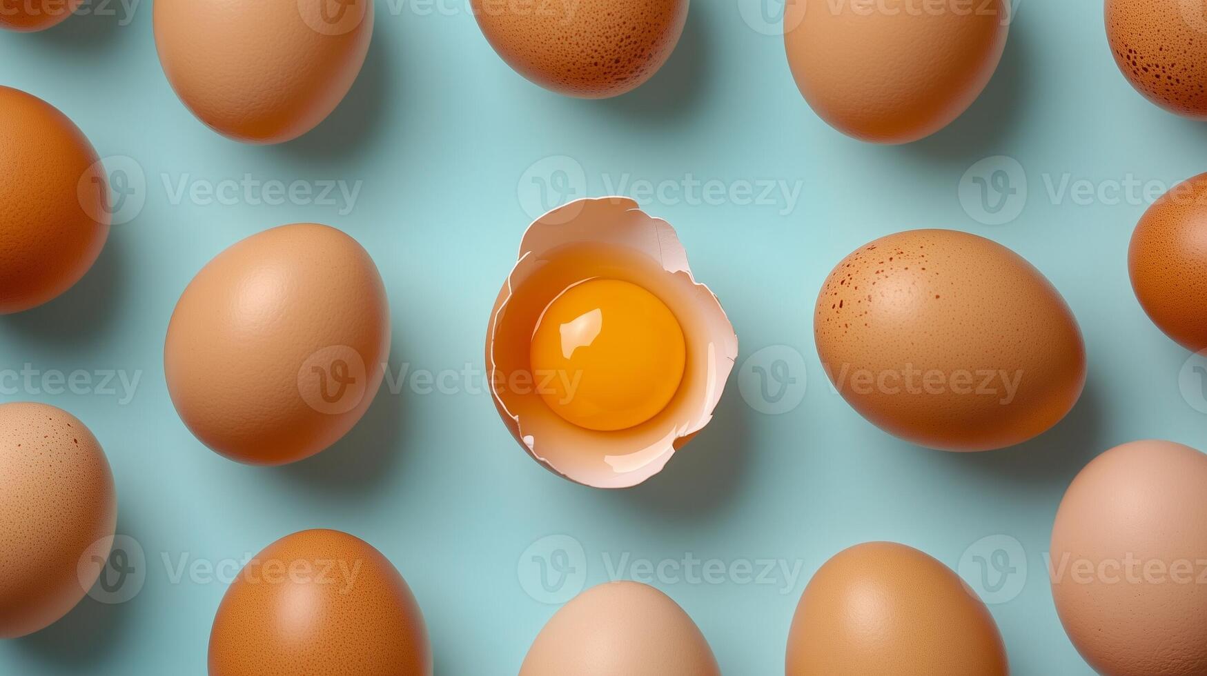 Egg pattern with a distinct anomaly of crushed shell showing egg yolk Pro Photo