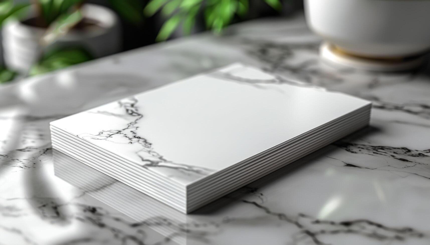 A white book with a marble pattern on it sits on a marble table Free Photo