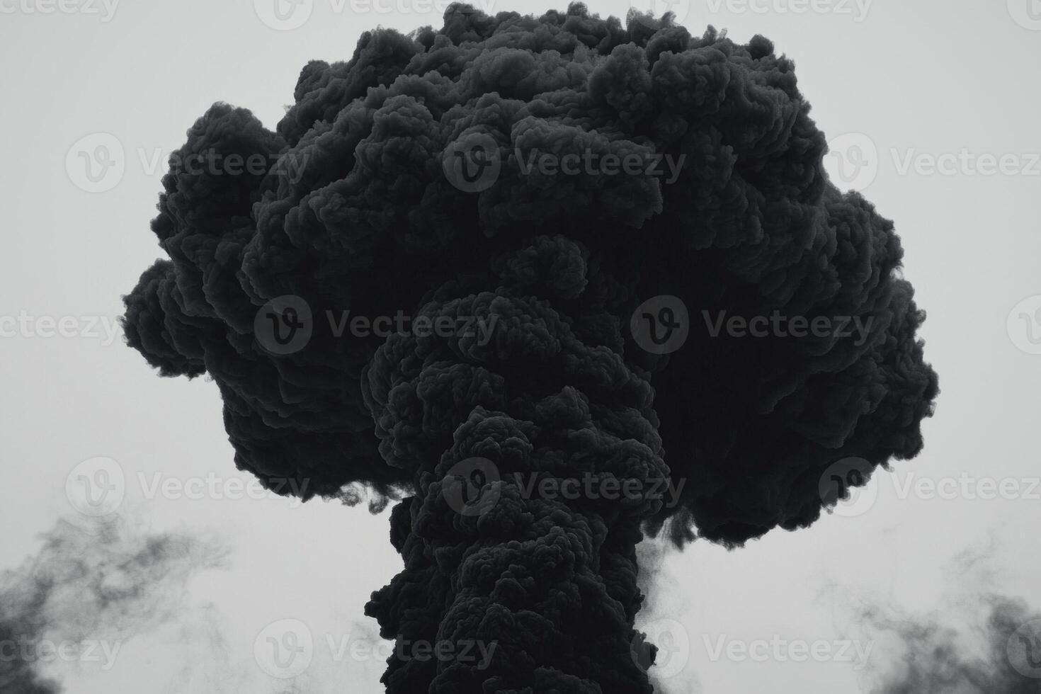 Dense black smoke rises dramatically, forming dark clouds that transition into soft, smoky trails, creating an intense and captivating visual interplay against a white background Pro Photo