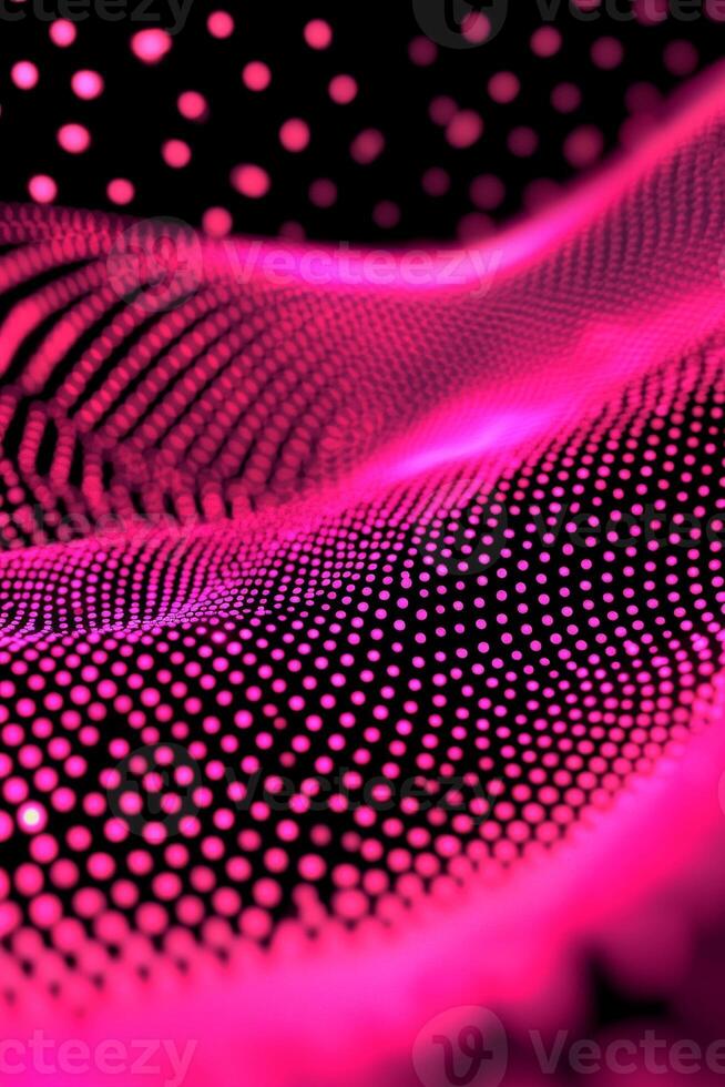mesmerizing wave of pink dots undulates across a deep black canvas, with blurred particles suggesting fluid motion and glowing edges adding a cosmic allure. Pro Photo