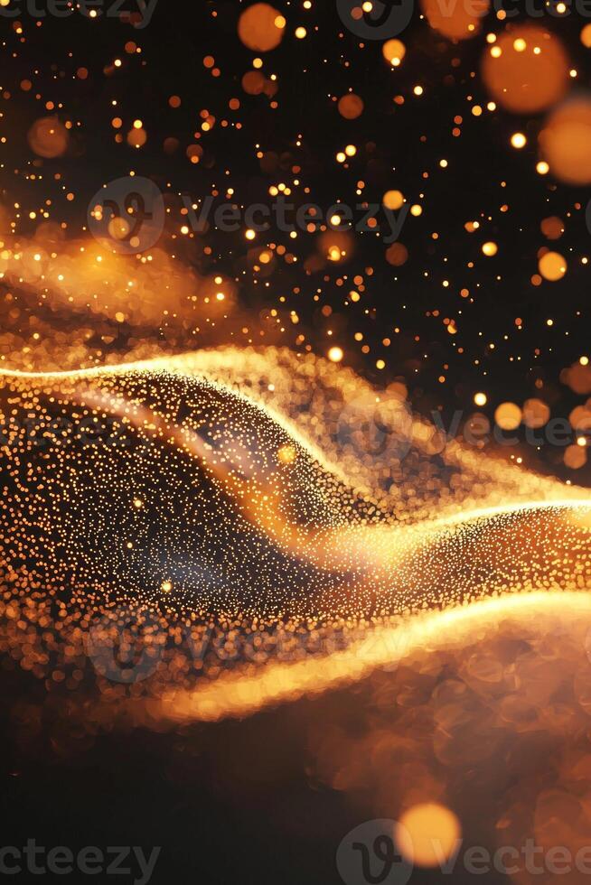 Orange dots ripple across a dark void, forming a soft wave pattern. The blurred particles evoke motion, inviting the viewer into a mesmerizing cosmic embrace filled with elegance. Pro Photo