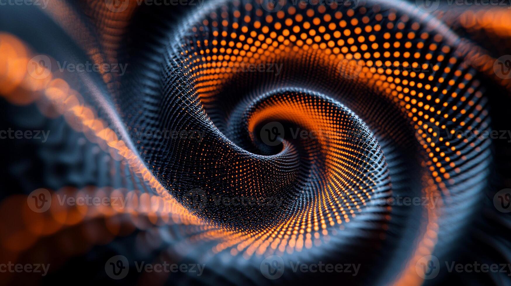 Glowing orange dots swirl gracefully in a spiral formation against a dark background, creating a captivating cosmic scene full of depth and warmth, inviting contemplation and wonder. Pro Photo