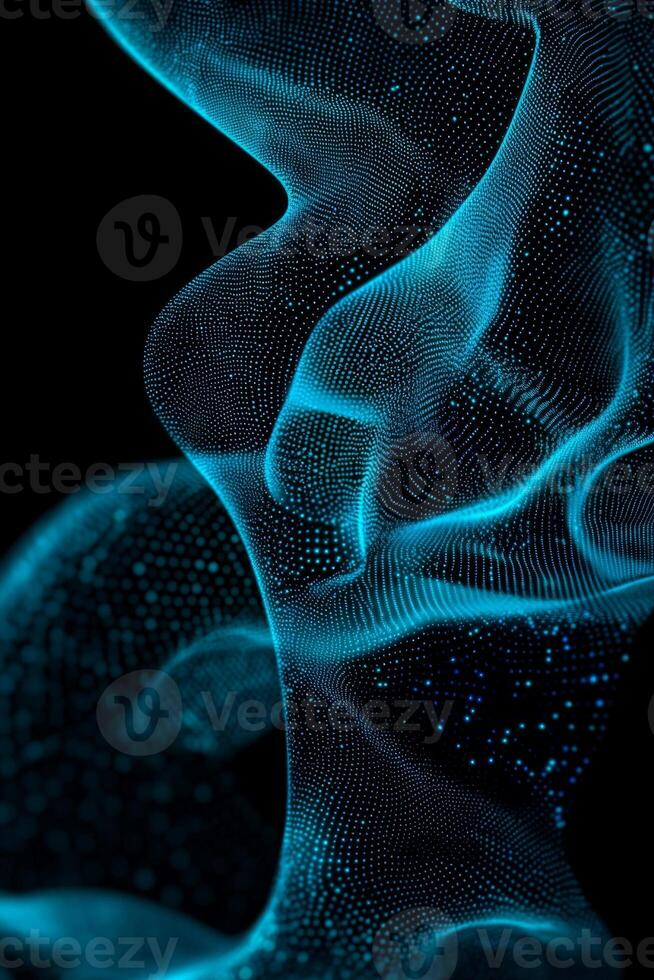 An intricate arrangement of blue particles flows gracefully across a dark canvas, evoking a sense of movement and fluidity, blending art with digital creativity. Pro Photo