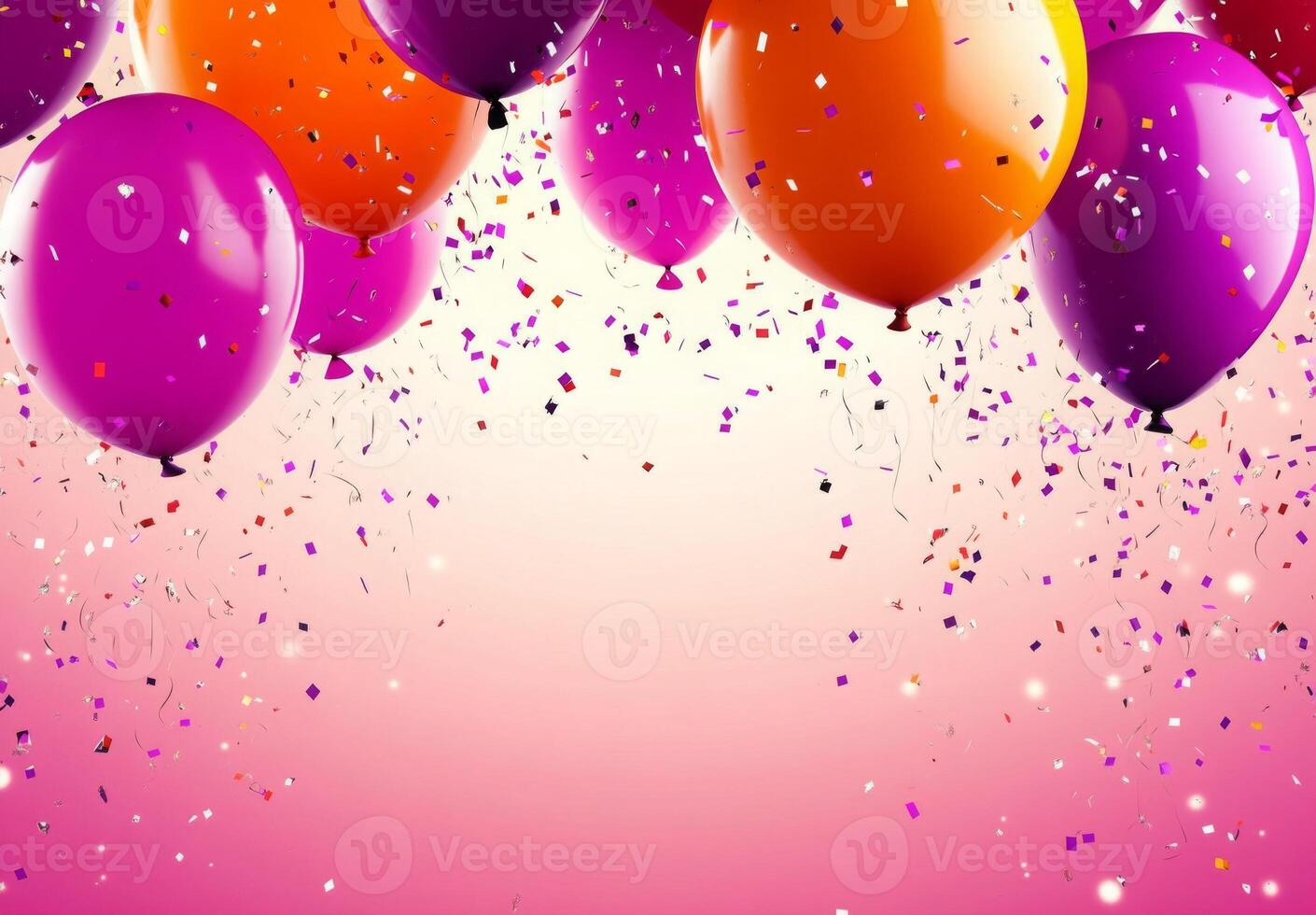 Bright party balloons and confetti cascading from the top of the image, with an empty center section perfect for custom use Pro Photo