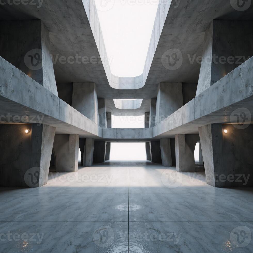 A sleek modern 3D render showcasing an empty expanse of abstract futuristic concrete architecture Pro Photo