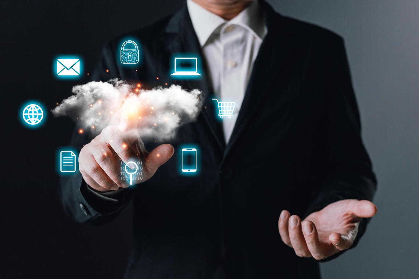 hand touch cloud computing diagram show on hand.Data storage.the use of online digital network technology in business, buying and selling commerce online digital marketplace photo