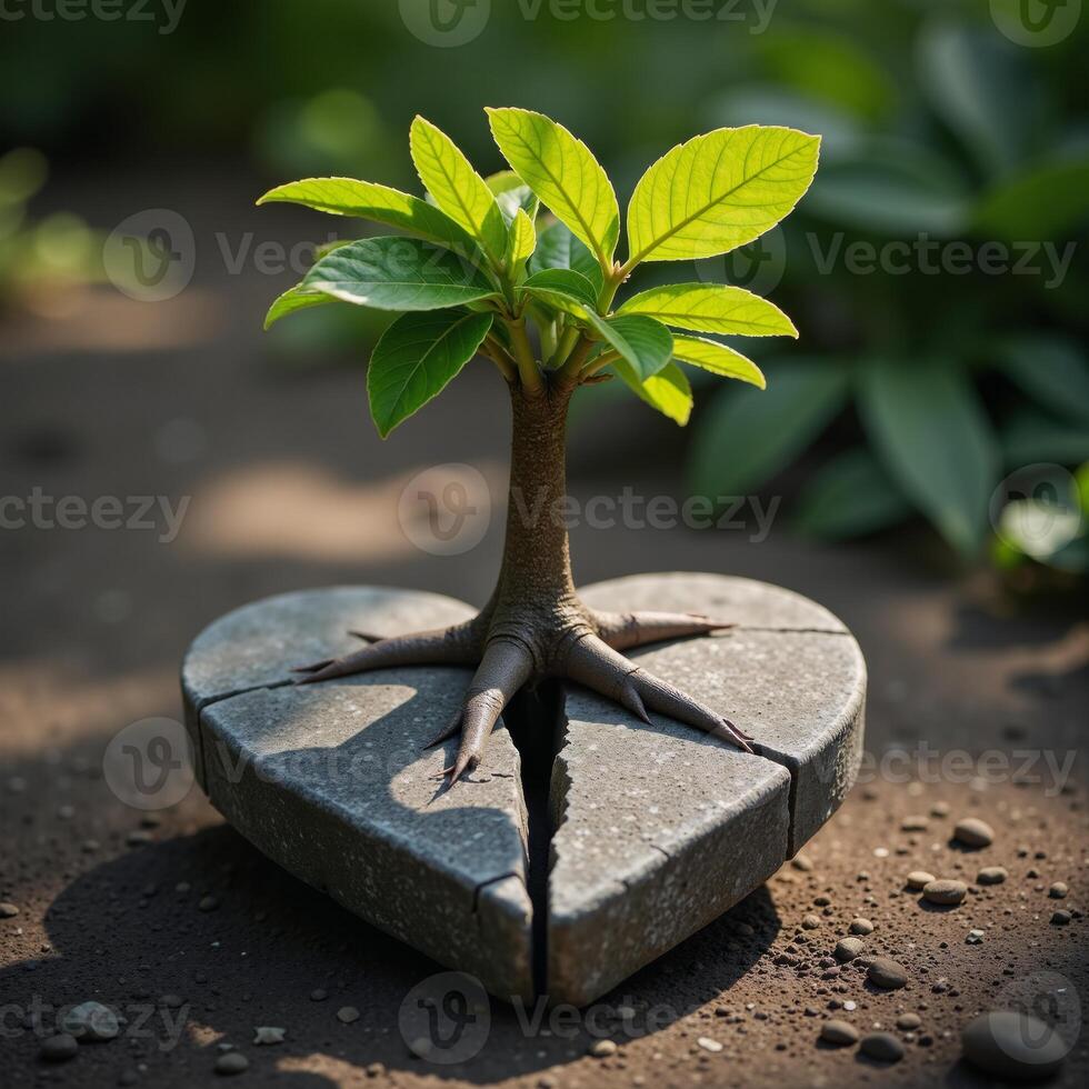 Tree with roots cracking through symbolic heart signifying emotional healing through introspective growth Pro Photo