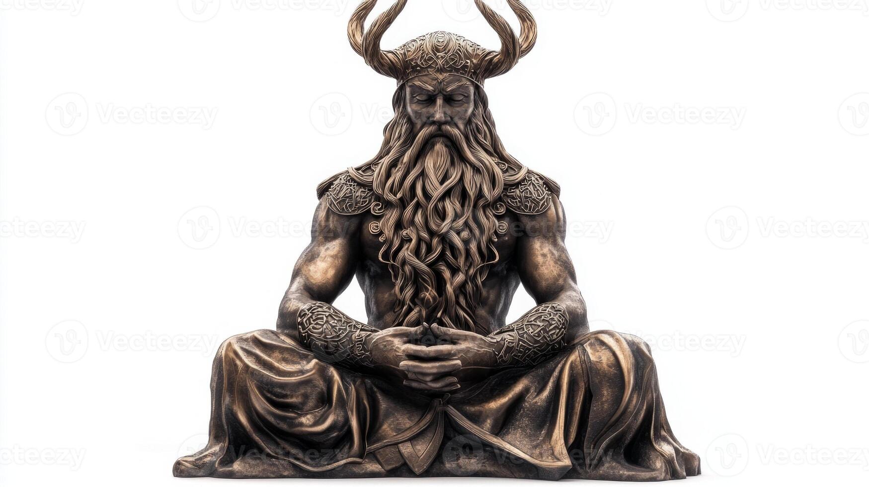 Njord revered Scandinavian god of sea and winds is portrayed with a flowing beard and distinctive horns emphasizing his mythical qualities against a clean backdrop. Pro Photo