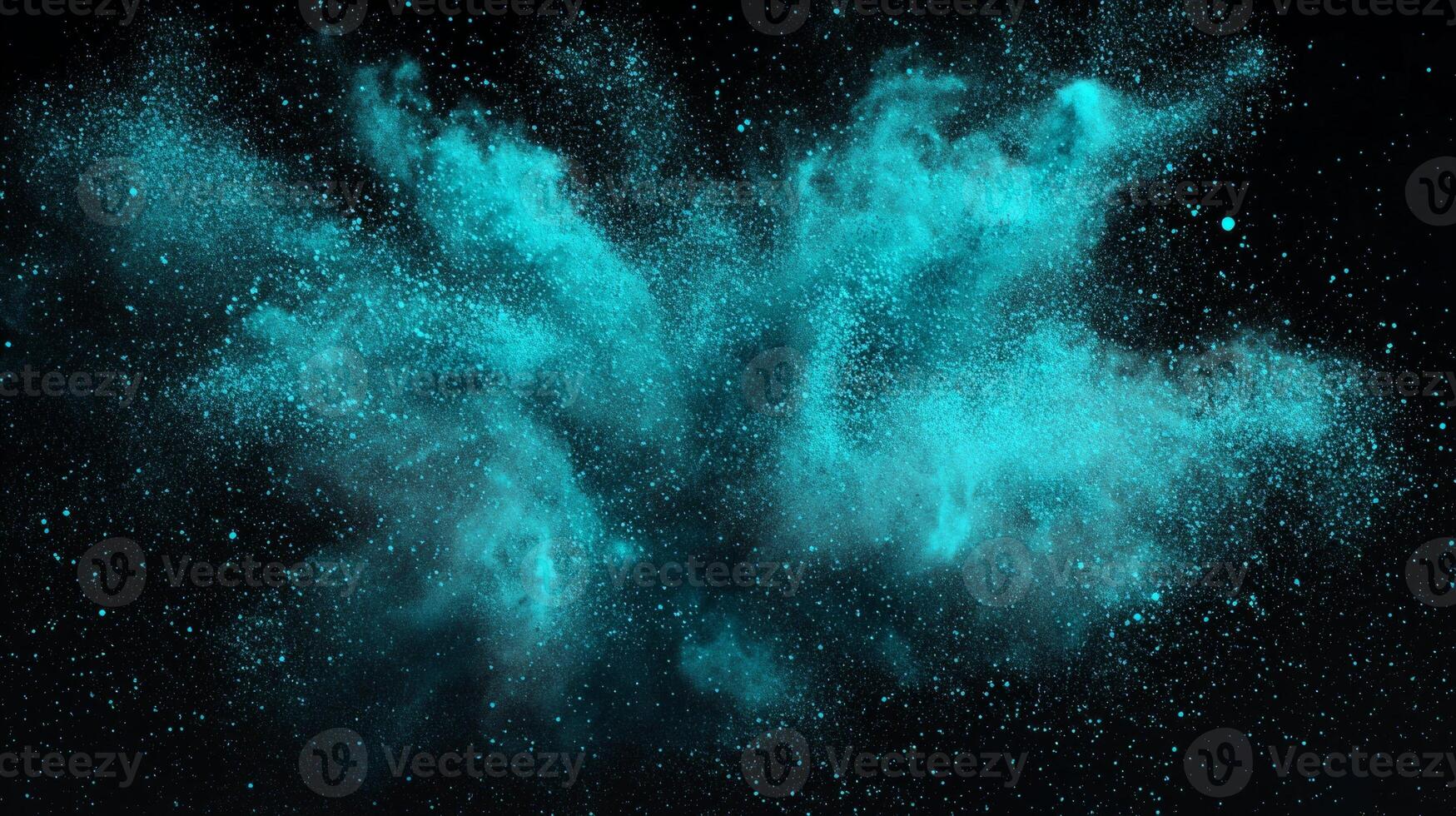 A striking explosion of turquoise particles radiates from a central point, creating mesmerizing trails against a deep black background, evoking cosmic energy and movement. Pro Photo