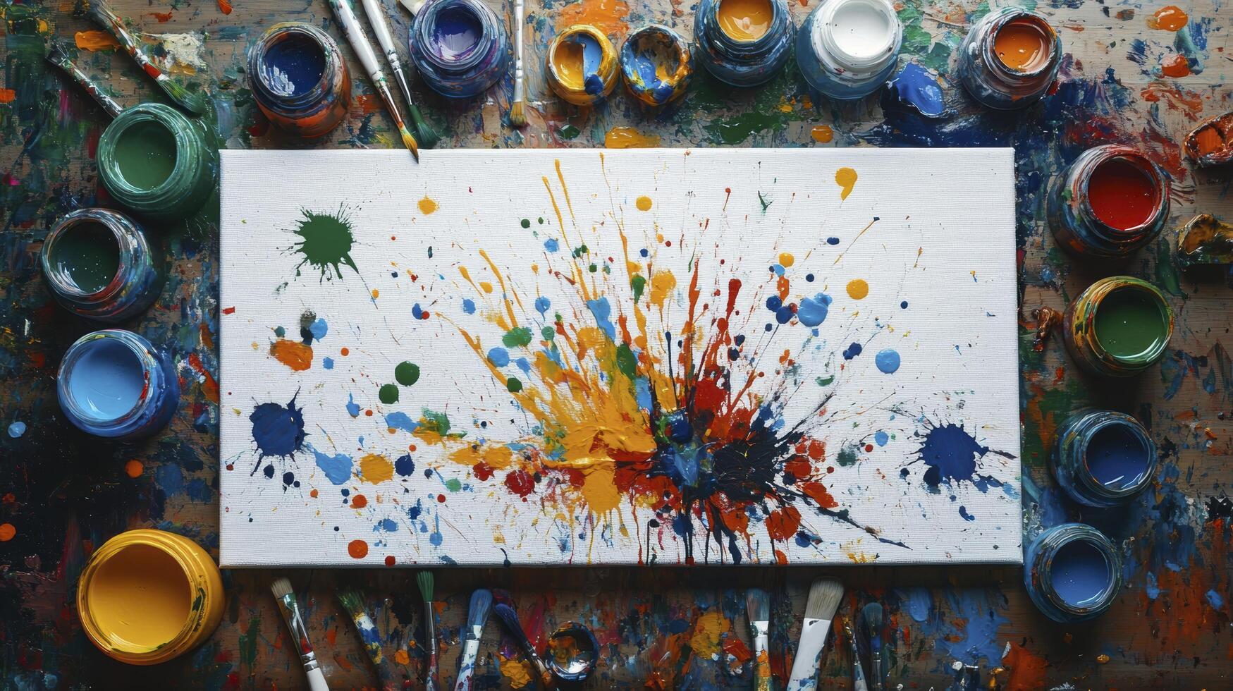Artist creating colorful abstract painting using splatter technique Free Photo