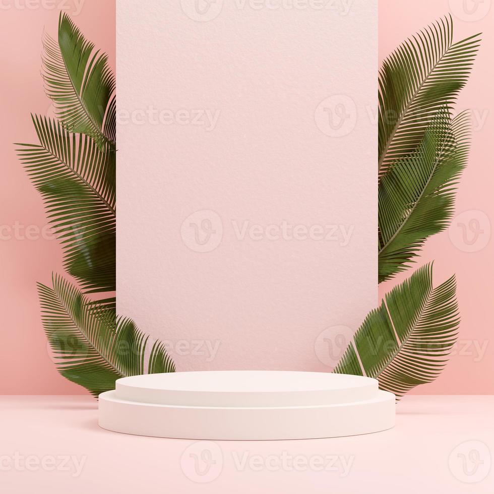 3D illustration rendering image of empty space mockup podium geometric shape and green nature themed for product display Pro Photo