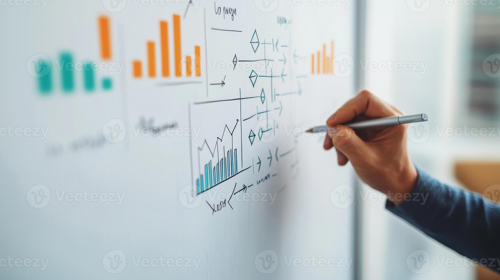 Hand drawing data analysis on a whiteboard with graphs. Pro Photo