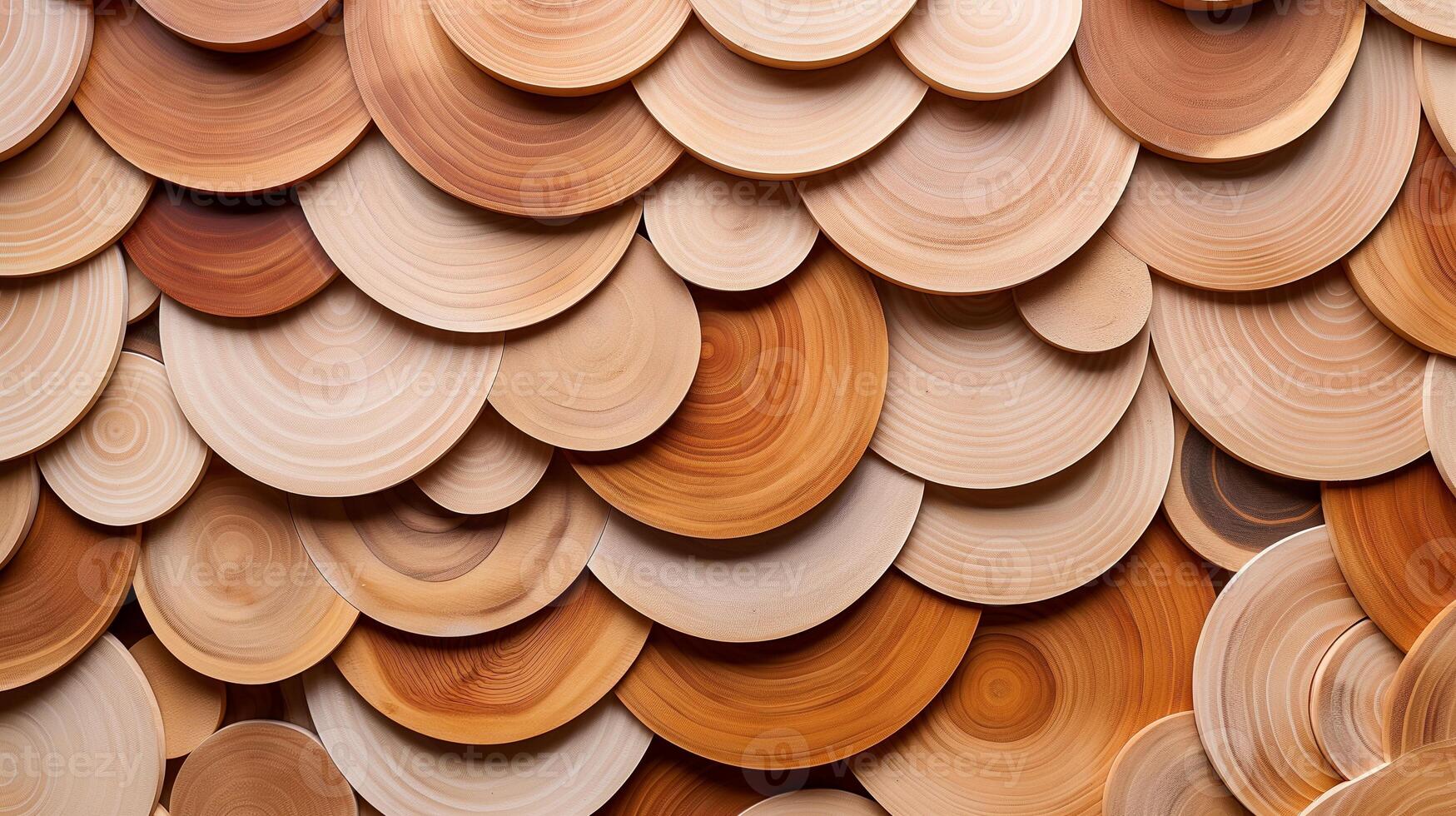 Arrangement of thin wooden circles banner background copy space. Textured timber material pattern image backdrop empty. Carpentry art craft concept composition top view, copyspace Pro Photo