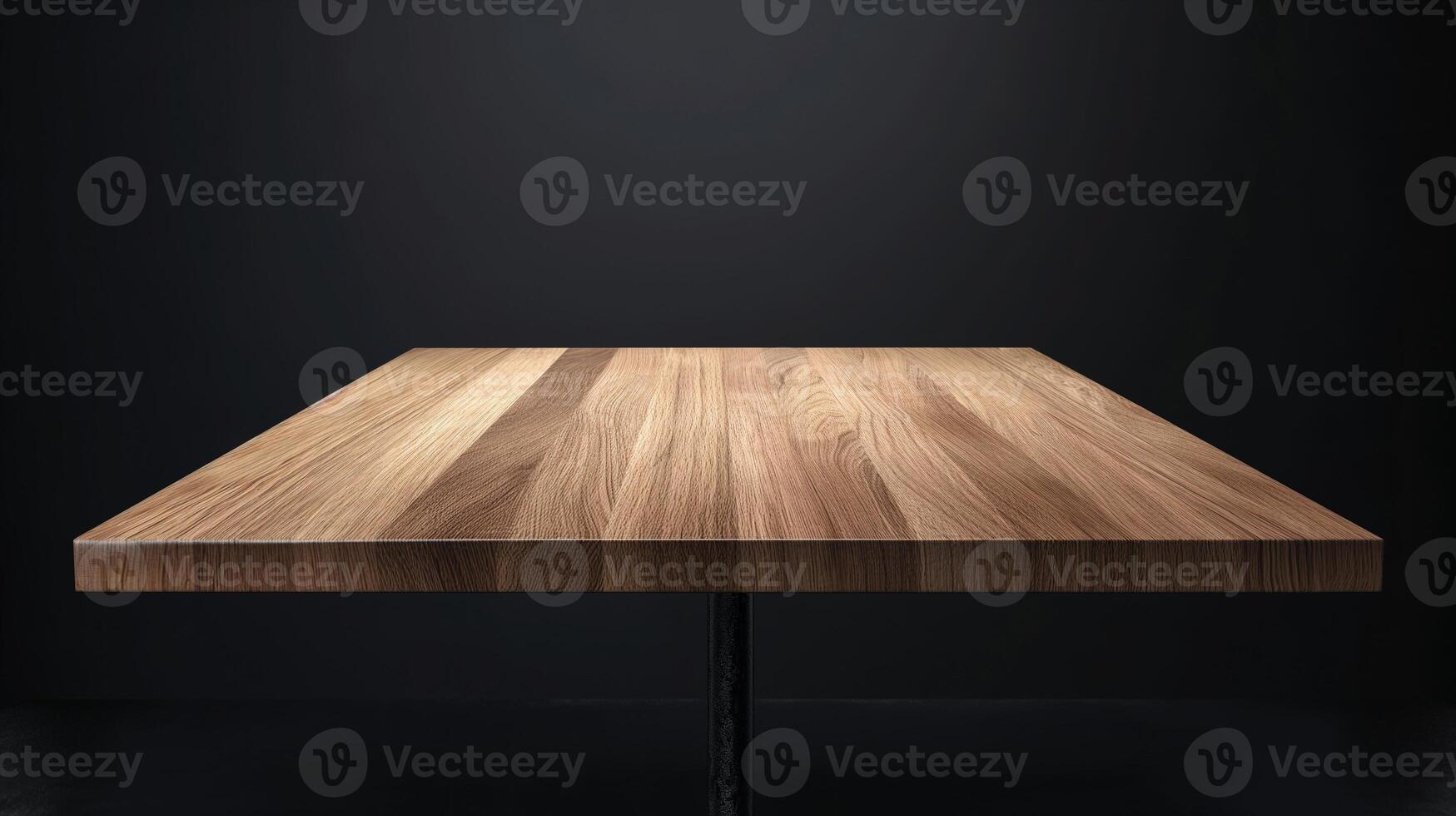 Wooden one leg table banner background copy space. Timber display for items arrangement image backdrop empty. Minimalist furniture concept composition front view, copyspace Pro Photo