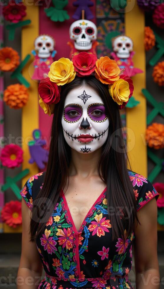 A Day of the Deadthemed image featuring a Mexican holiday pattern focused on vibrant background details while providing ample room for text or other elements selective focus Pro Photo
